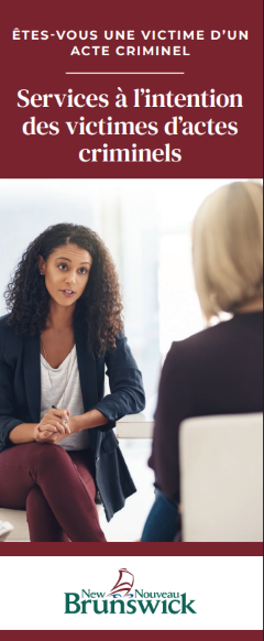 Cette brochure expliquera le rôle que joue de la Direction de Justice et de la Sécurité publique en vue d’aider les victimes à connaître leurs droits et à obtenir les renseignements et les services suivants à mesure que leur dossier suit son cours dans le processus de justice pénale.